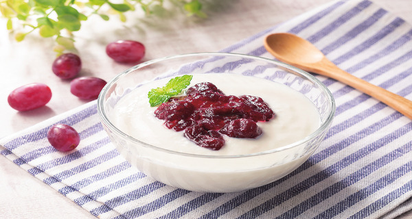 ぶどう濃縮果汁を使用し、風味に豊かさを加えて、濃い味に仕上げました。ぶどうの濃厚な