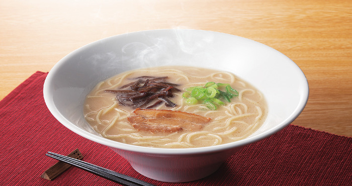 細麺とまろやかで豚骨の臭みを抑えた旨みのあるスープを合わせました。